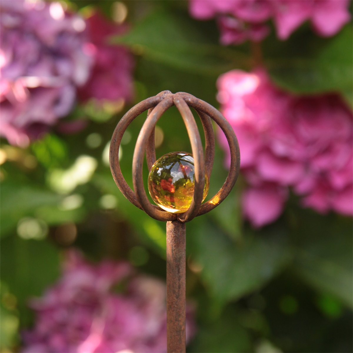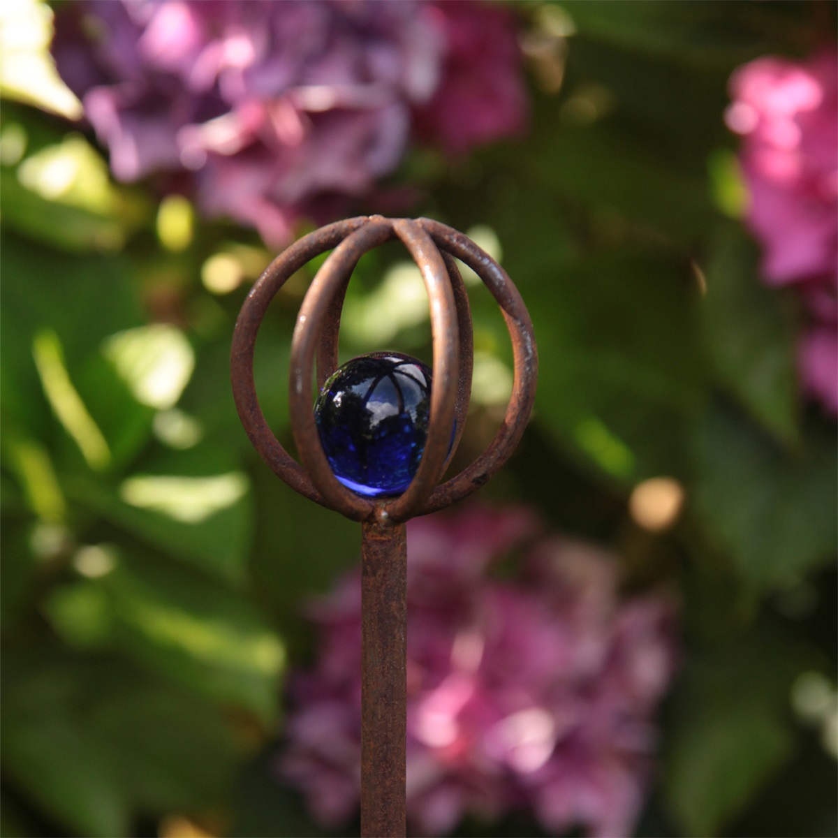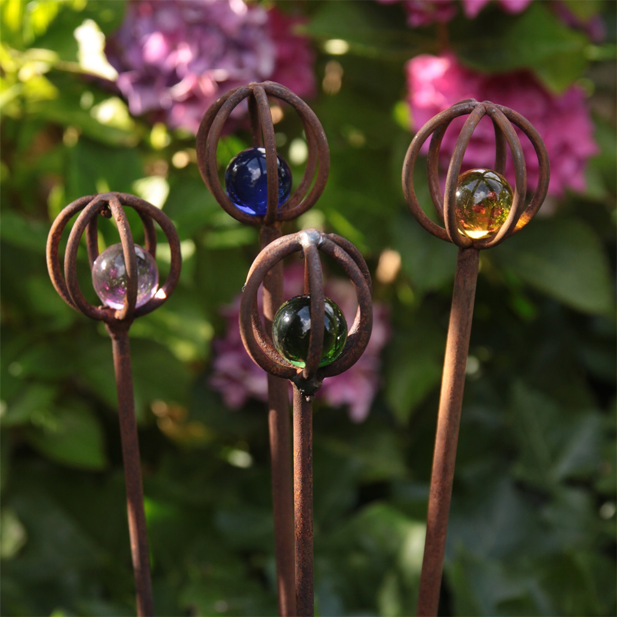 Den rustika känslan från järn möter det skimrande ljuset i en färgad glaskula - en dekoration som drar blickarna till sig, både i sol och skugga. Dekorationsmix korn säljes i set om 4 med olika färger.