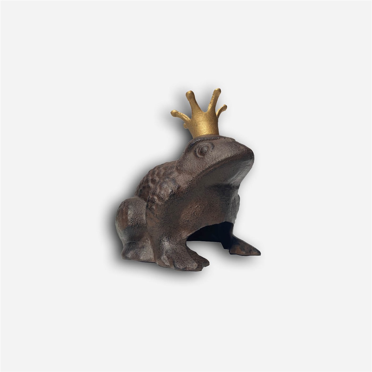 Strandgrodan är tillverkad i kraftigt gjutjärn, vilket ger både tyngd och stabilitet. Den rustika ytan i kombination med den lilla guldkronan skapar ett uttryck som känns både humoristiskt och genomarbetat – perfekt för dig som vill addera en personlig detalj i din utemiljö.