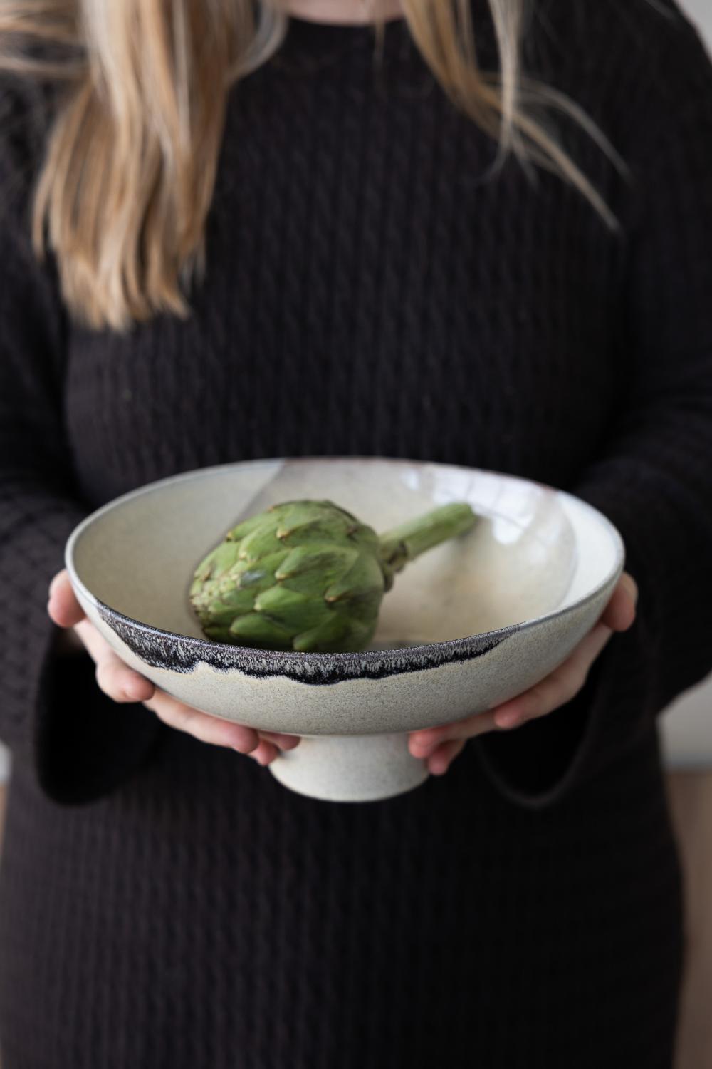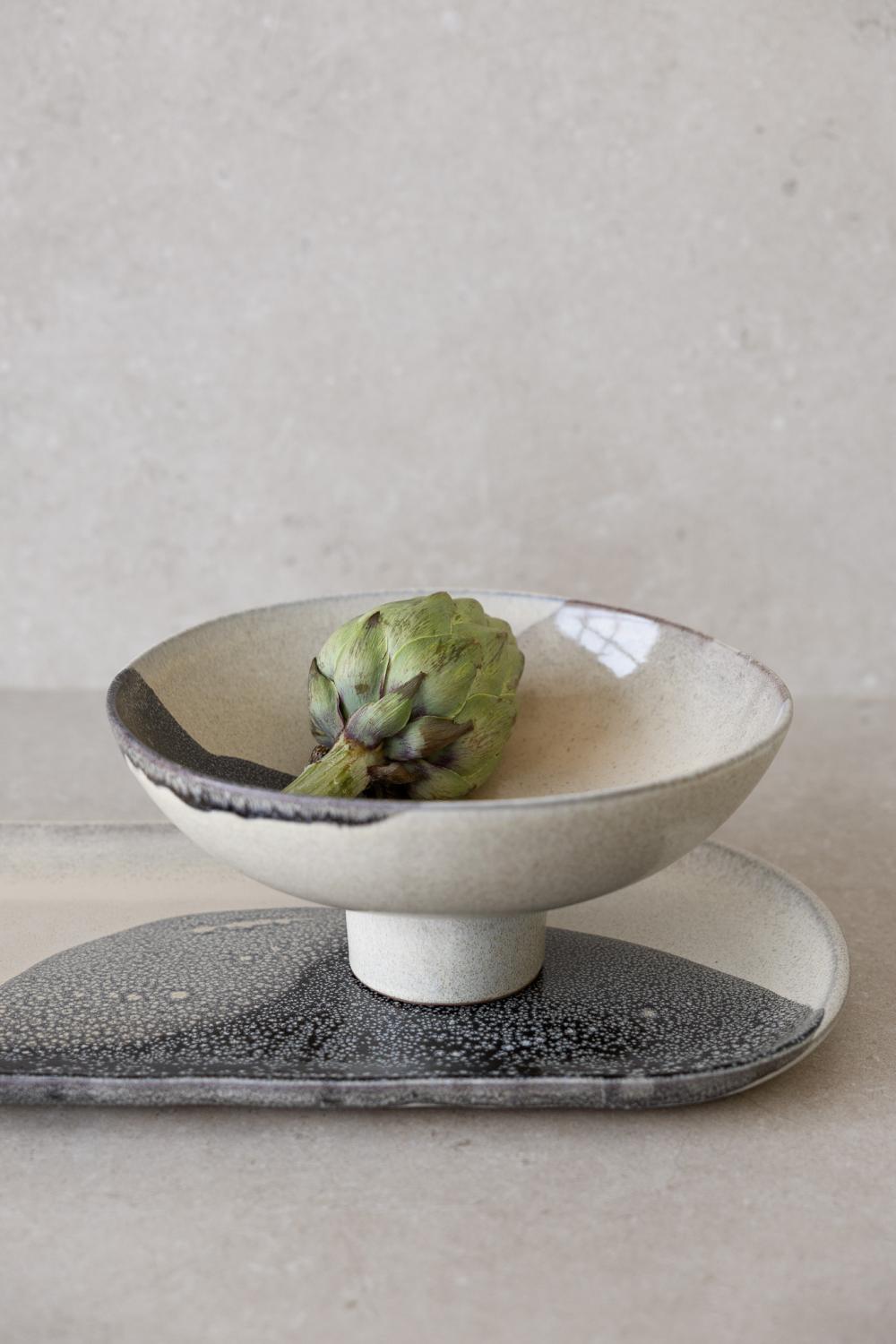 Handgjord skål på fot, tillverkad i Portugal. En elegant och stilren detalj som förhöjer dukningen när gästerna är på besök. Perfekt för frukt, snacks eller sallad. Den unika designen gör att skålen också är vacker att ha framme som en enkel men fin dekoration.