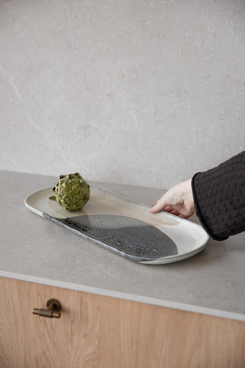 Svart/beige serveringsfat