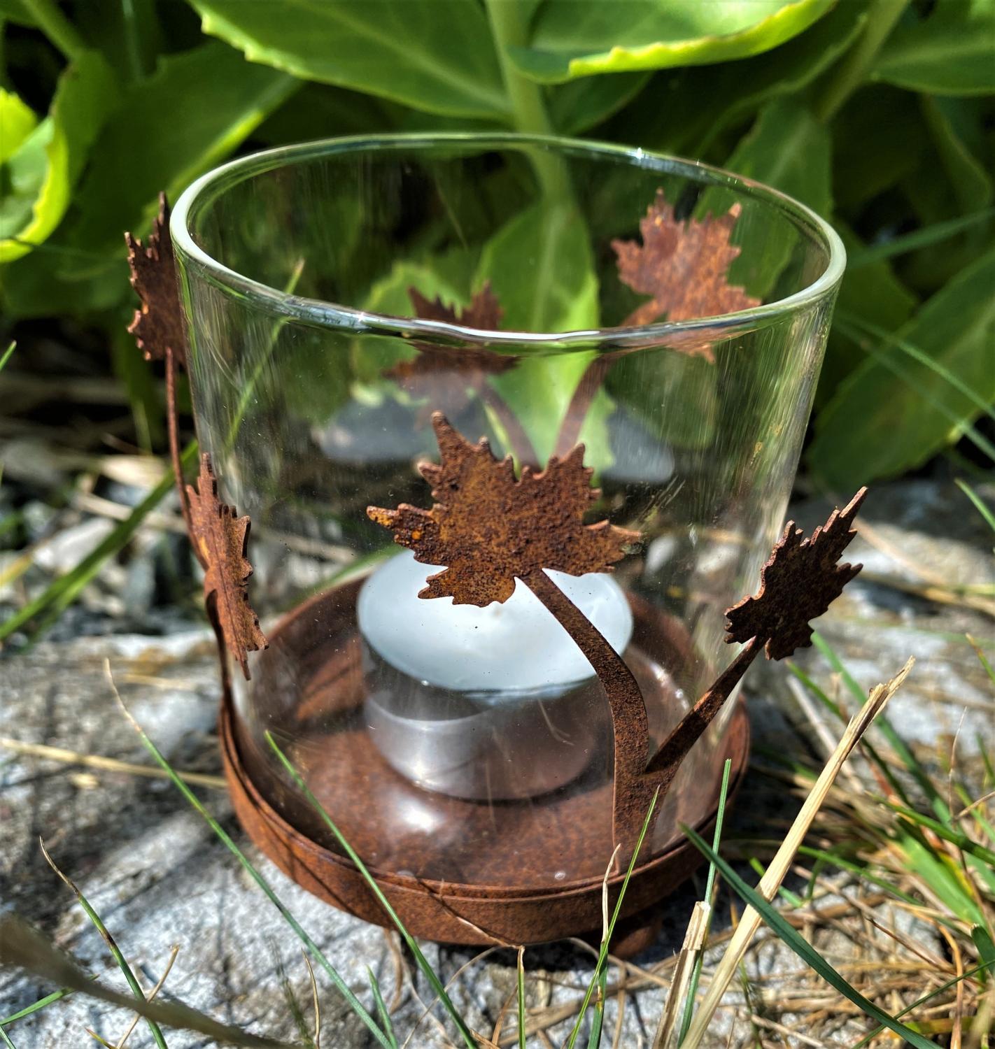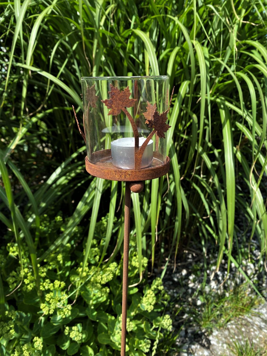 Denna ljushållare i rost från Lind Decoration kan både sättas direkt på ett bord eller mark eller monteras på en medföljande pinne. Perfekt både ute och inne.