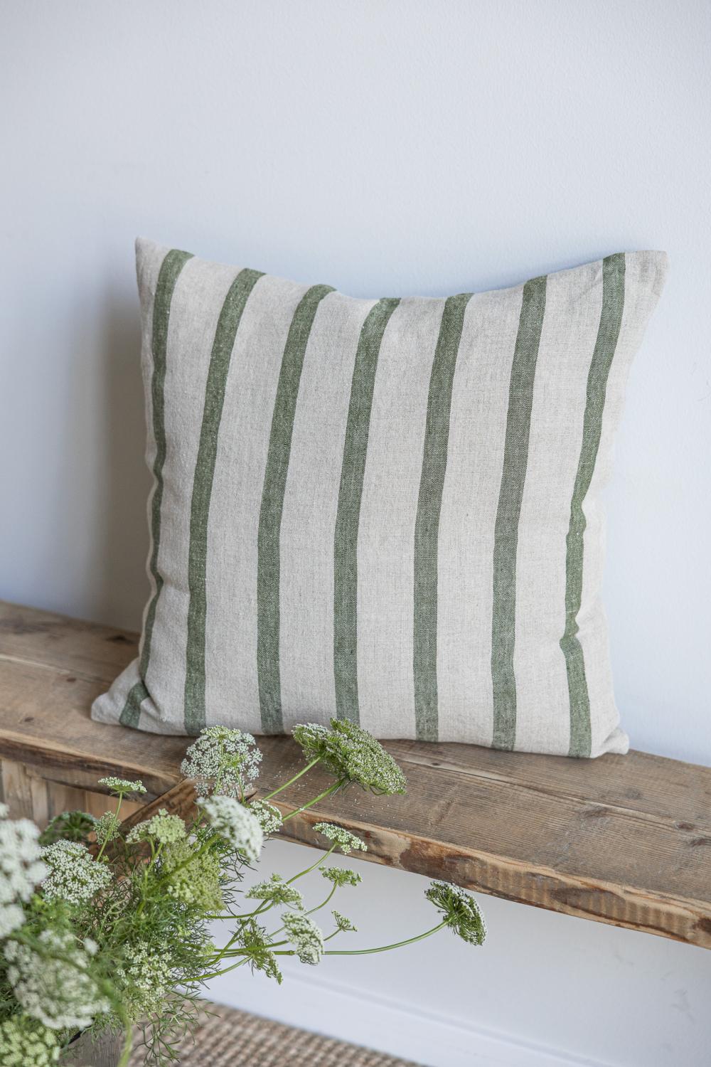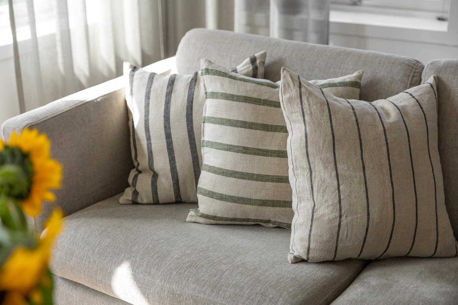 Kuddfodral i jordnära toner i noga utvald linnetextil