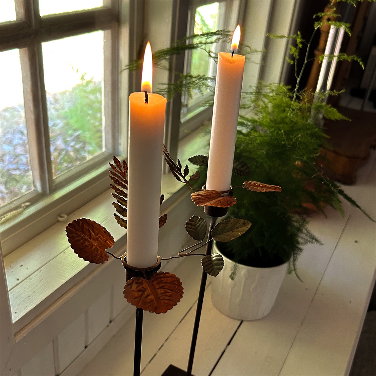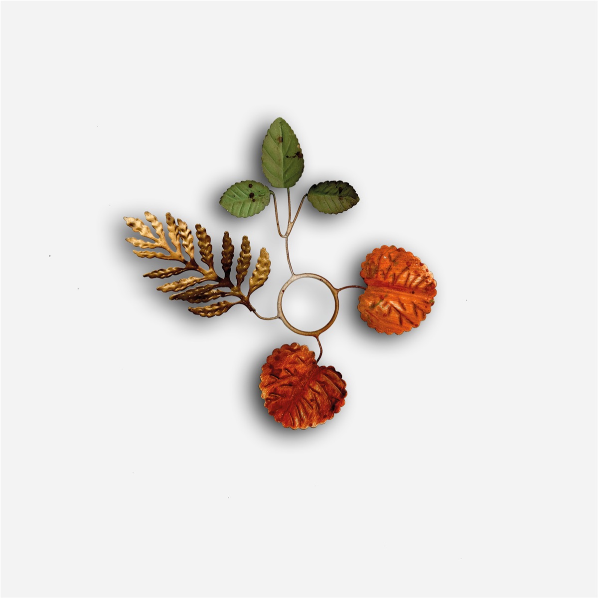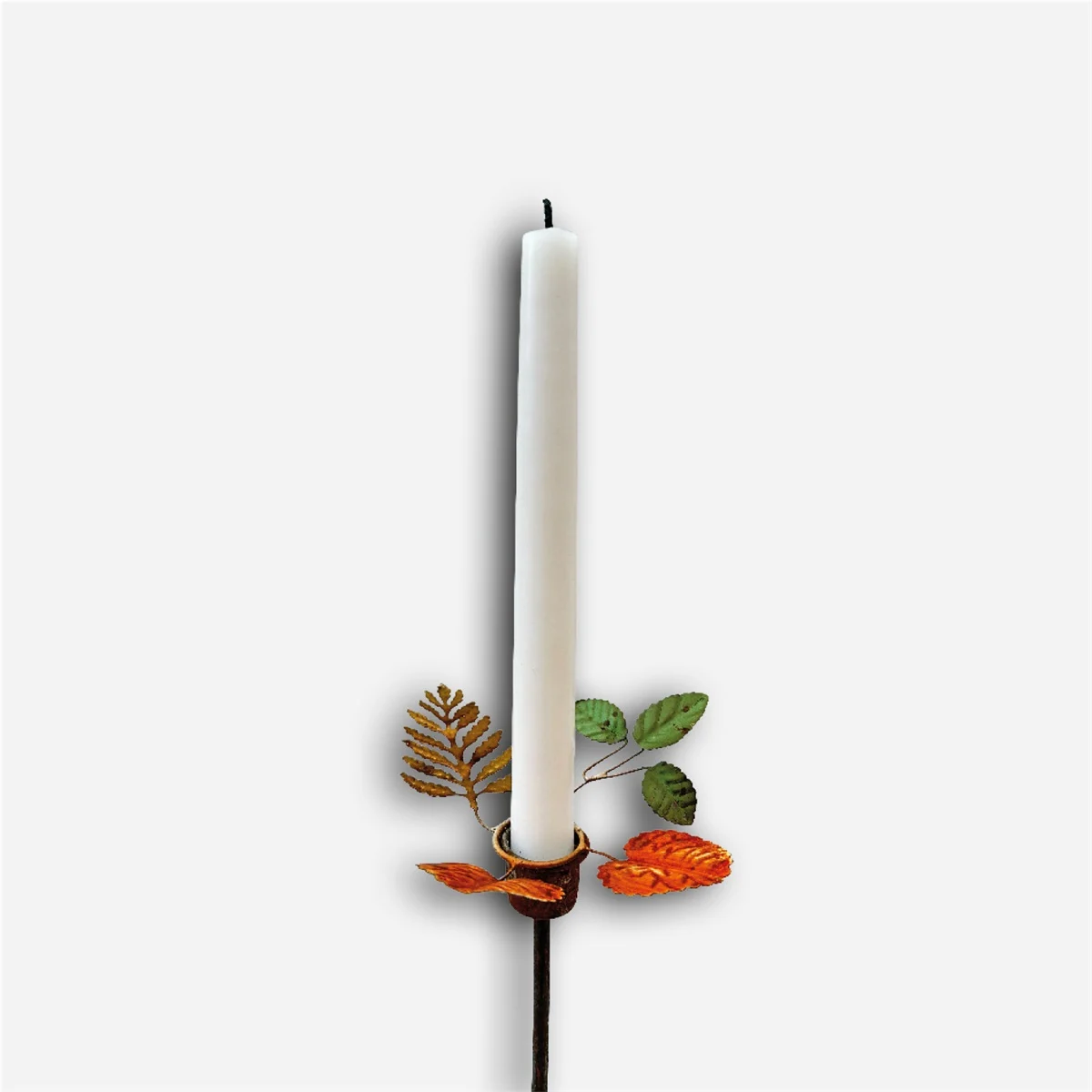 ELDgardens ljusmanschett Höst består av blad i tre olika färger: orange, grön och guld. Passar fint till ljusstaken Rönnbär i rost.