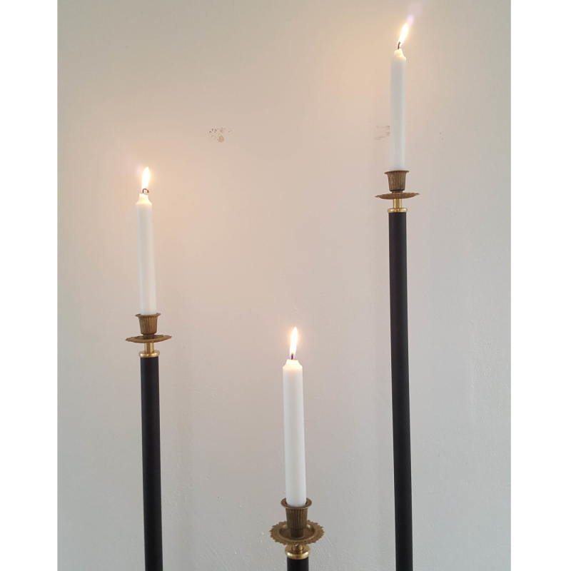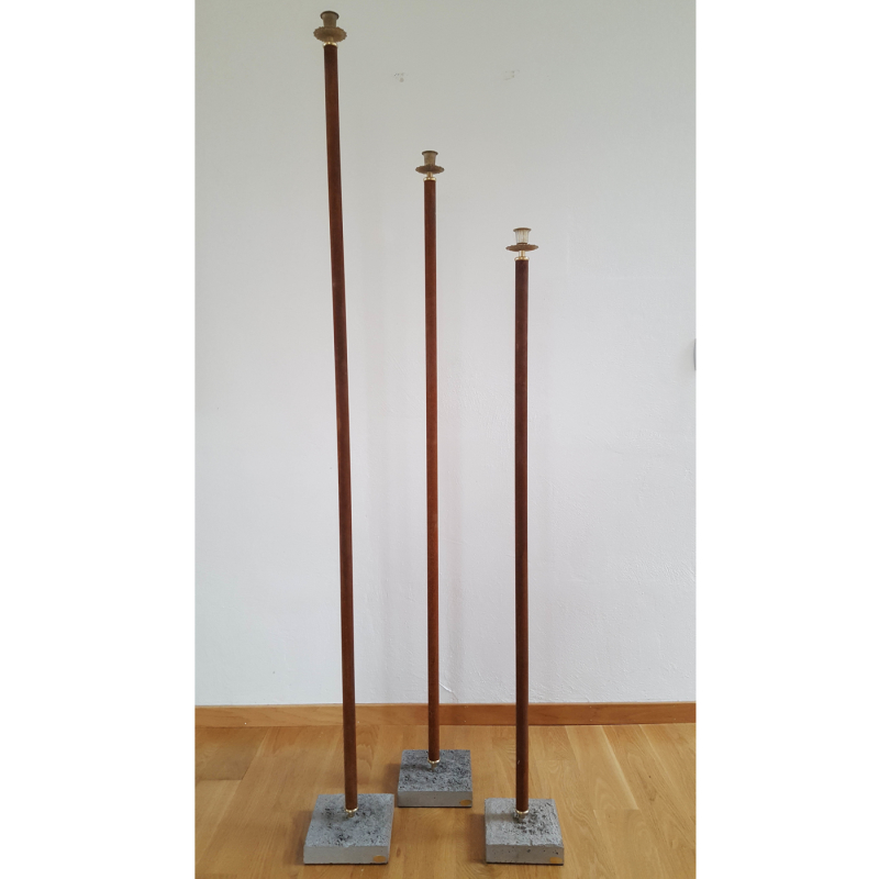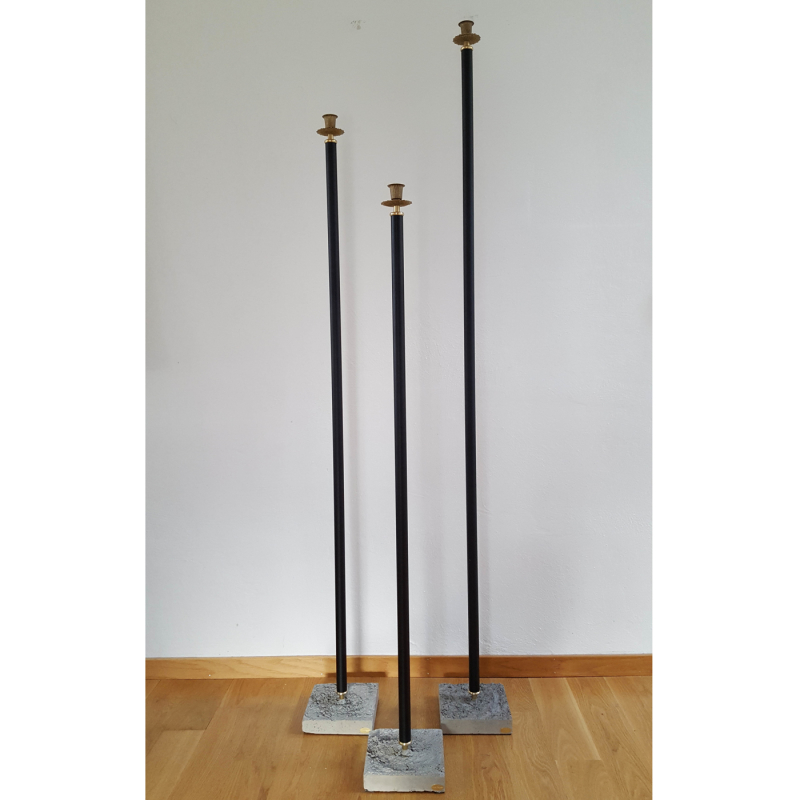 Svensktillverkad golvljusstake från Two Faces of Sweden i unik design med gjuten cementfot och detaljer i mässing. Elegant hög ljusstake med hög kvalitet i olika höjder. Finns i rost, svart och vit och 3 olika höjder (105, 125 samt 145 cm). Vi har även 165 cm men den går inte att skicka som DHL-paket. Kontakta oss vid intresse.