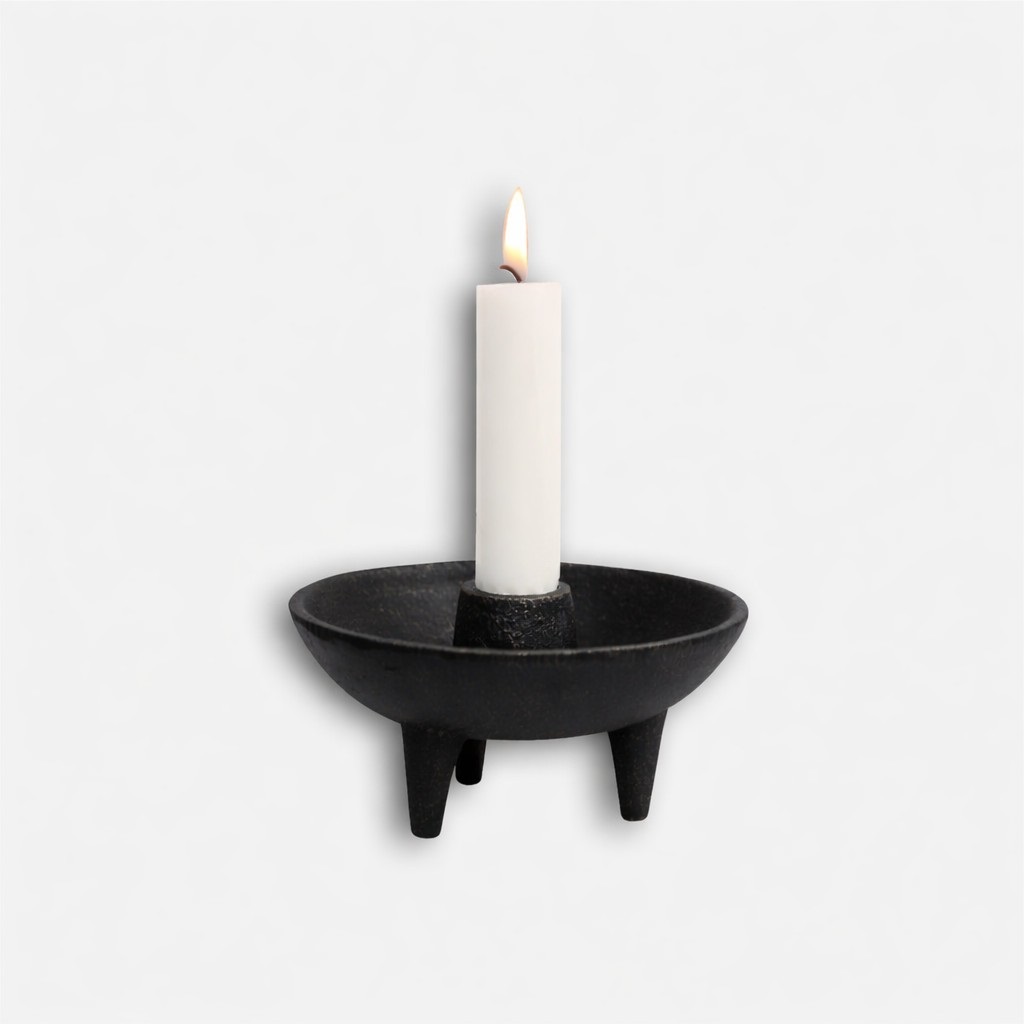 Ljusstaken står stadigt på små fötter och har en skålform som skyddar underlaget samtidigt som den ger ett klassiskt och gediget uttryck. Perfekt att placera på bord, hylla eller fönsterbräda för att skapa en mysig och harmonisk känsla.