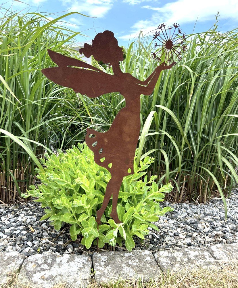Underbar stor älva i rost från Lind decoration som är fin i planteringar eller rabatter eller en stor kruka. Populär trädgårdsdekoration med snygg design.