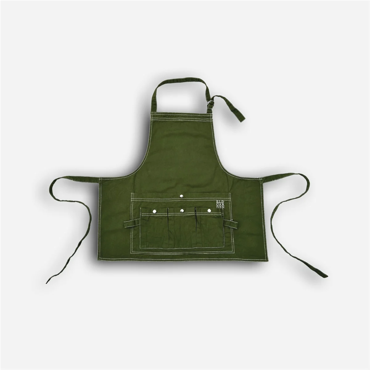 Nytt förkläde från ELDgarden i trendfärgen grön 100 % bomull med tre små fickor och en stor ficka med tryckknapp. Två hällor som är praktiska att hänga sekatören i. Finns även i blå färg se art 1279.