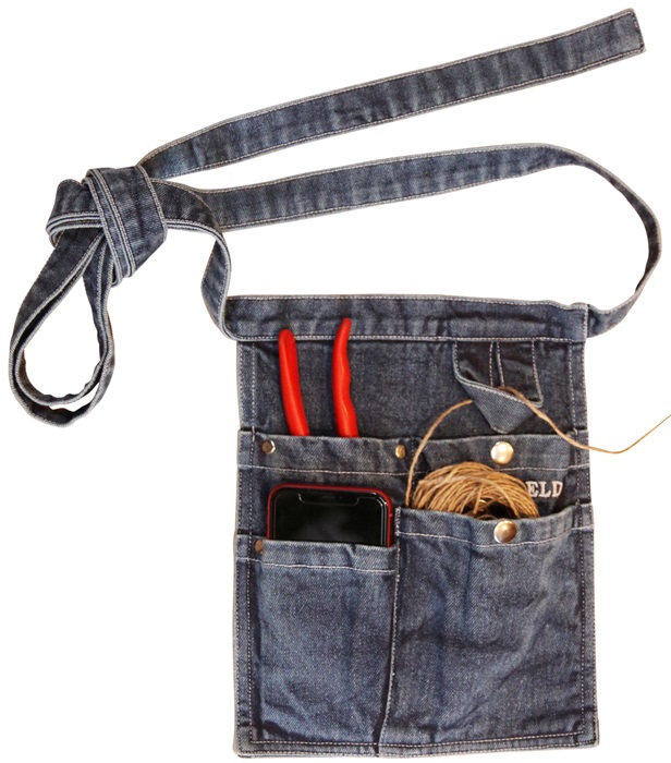 Nyhet verktygsbälte i 100% bomull design ELDgarden. Tre små fickor och en hälla "one size". Perfekt för trädgård att komplettera med trädgårdsförkläde och hatt.